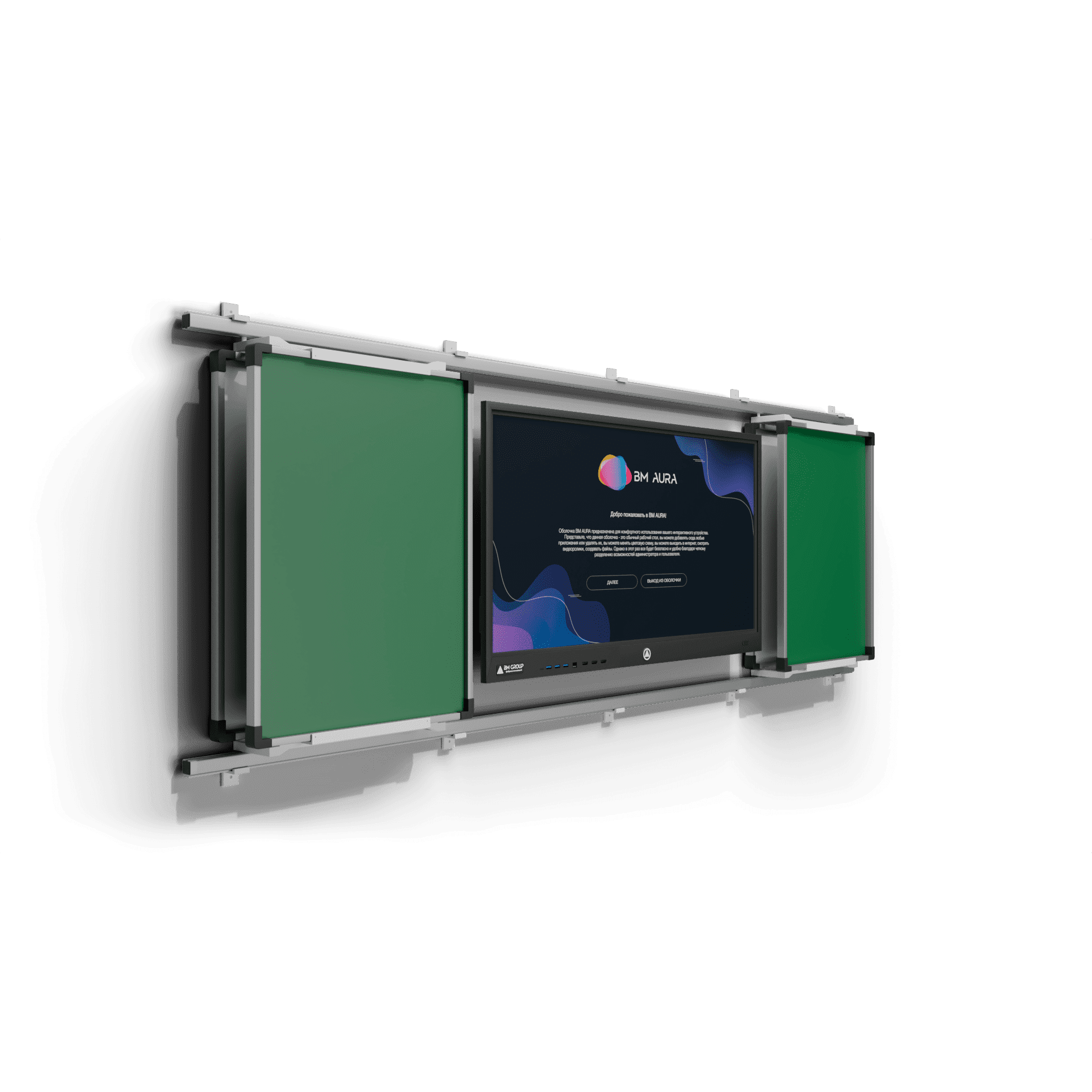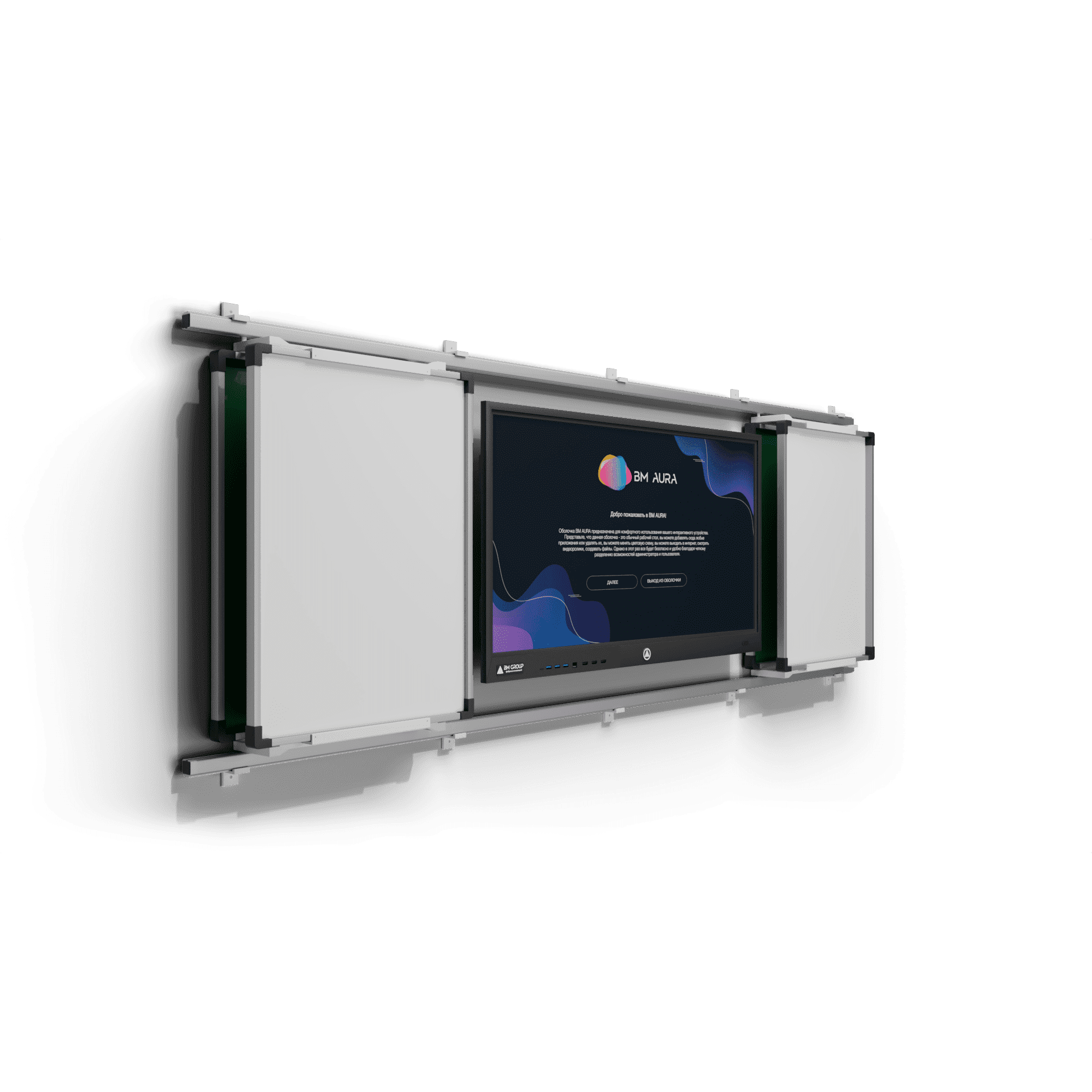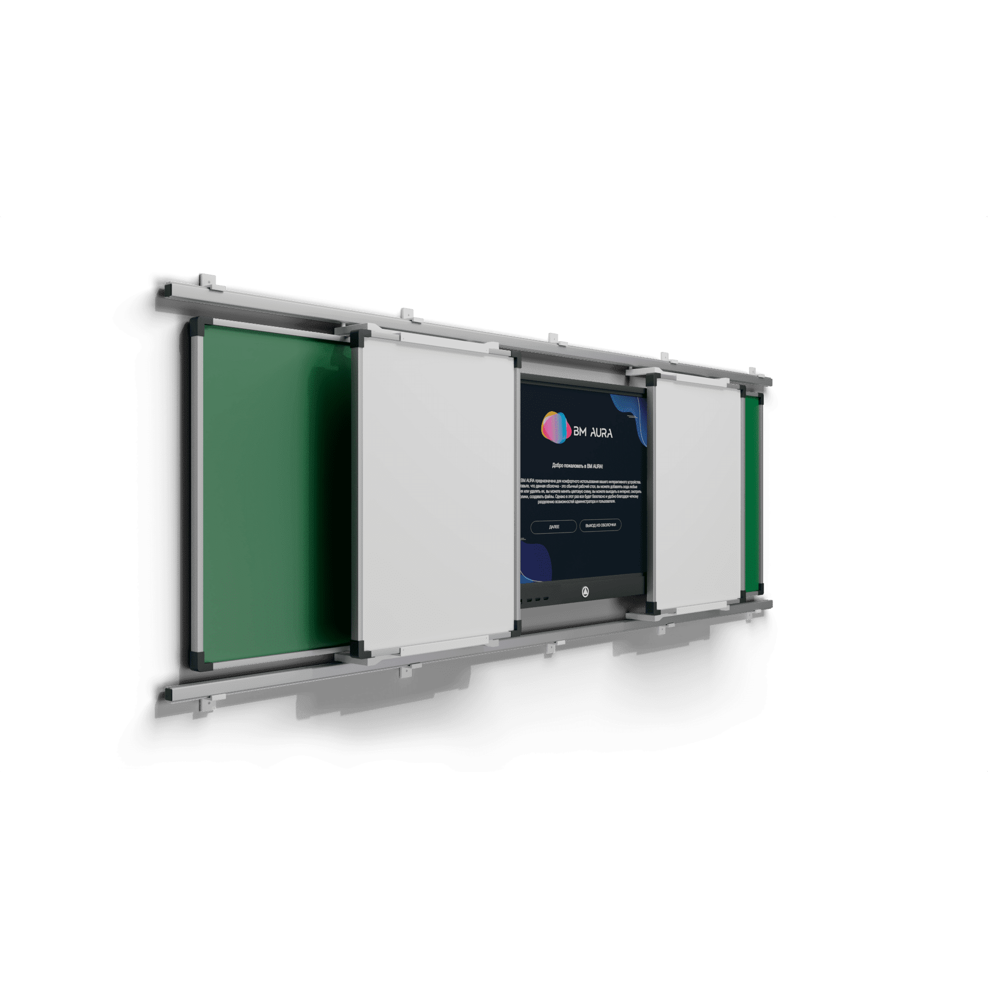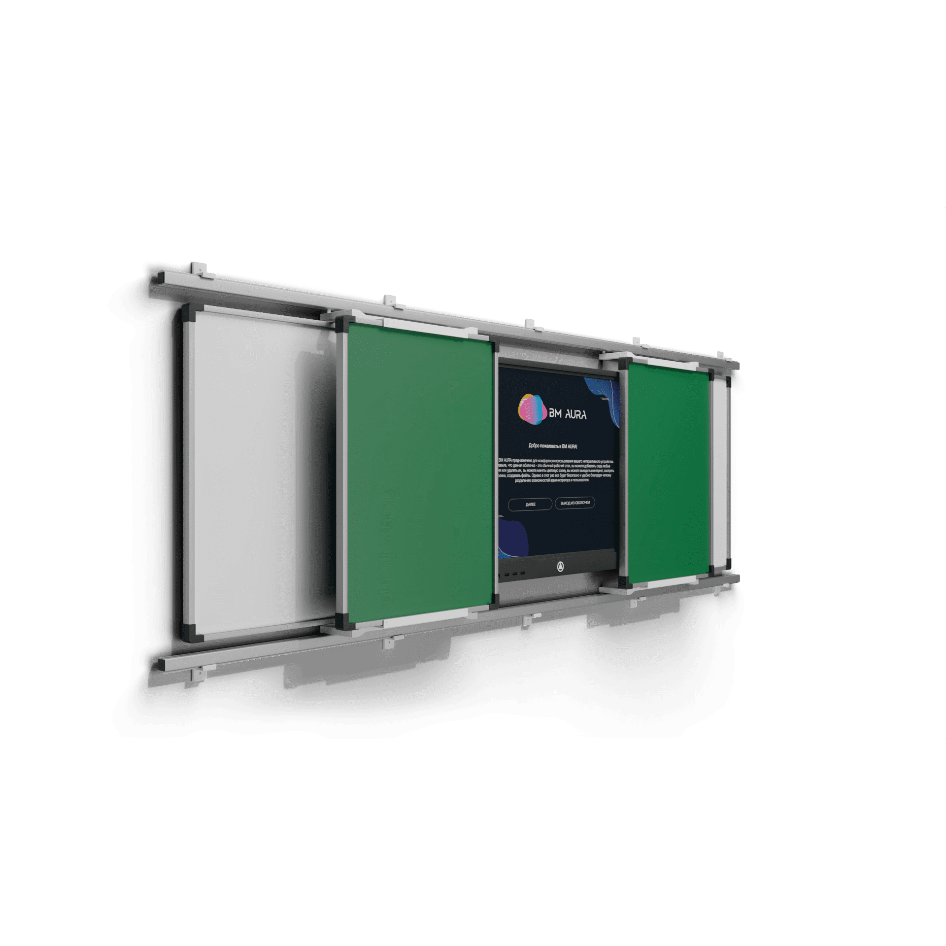 Система из раздвижных классных досок и интерактивной панели. Удобный в использовании комплект, предназначен для совмещения мультимедийных уроков и письма мелом. Передвижные элементы располагаются на рельсовых направляющих и легко раздвигаются в стороны. Настенные элементы крепятся к стене, увеличивая полезную площадь. Дополнительные опции: - Двухцветная окраска; - Любой цвет не по каталогу; - Цвет "металлик"; - Линейка цветов Crazy Colo; - Оклейка брендированной плёнкой; - Светящийся логотип; - Объемный логотип; - Печать логотипа на ПВХ; - Боковая подсветка (несколько цветов); - Парящая подсветка; - Светящиеся знаки на корпусе. Стоимость по запросу.