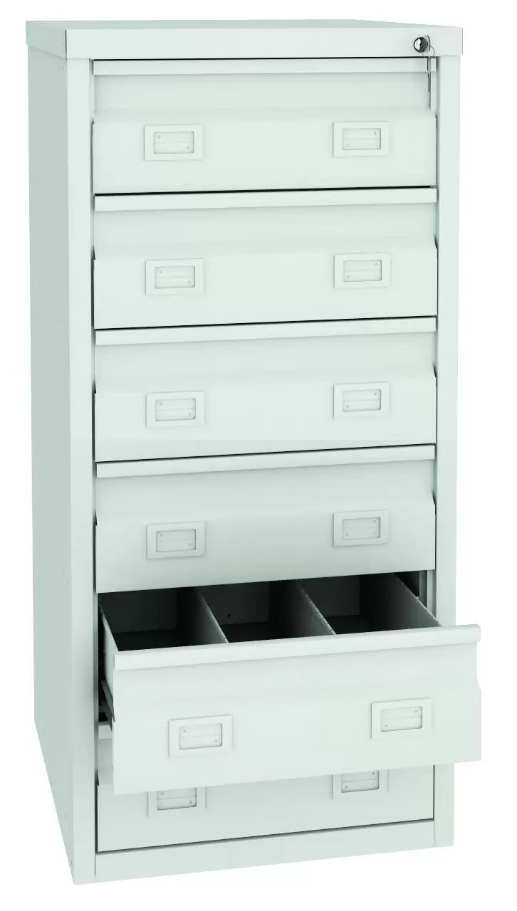 Шкаф картотечный FB-6 — это надежное и функциональное решение для хранения файлов и документов формата А5 или А6, а также трудовых книжек. Модель оснащена усиленными телескопическими направляющими выдвижных ящиков и рассчитана на 6 ящиков.