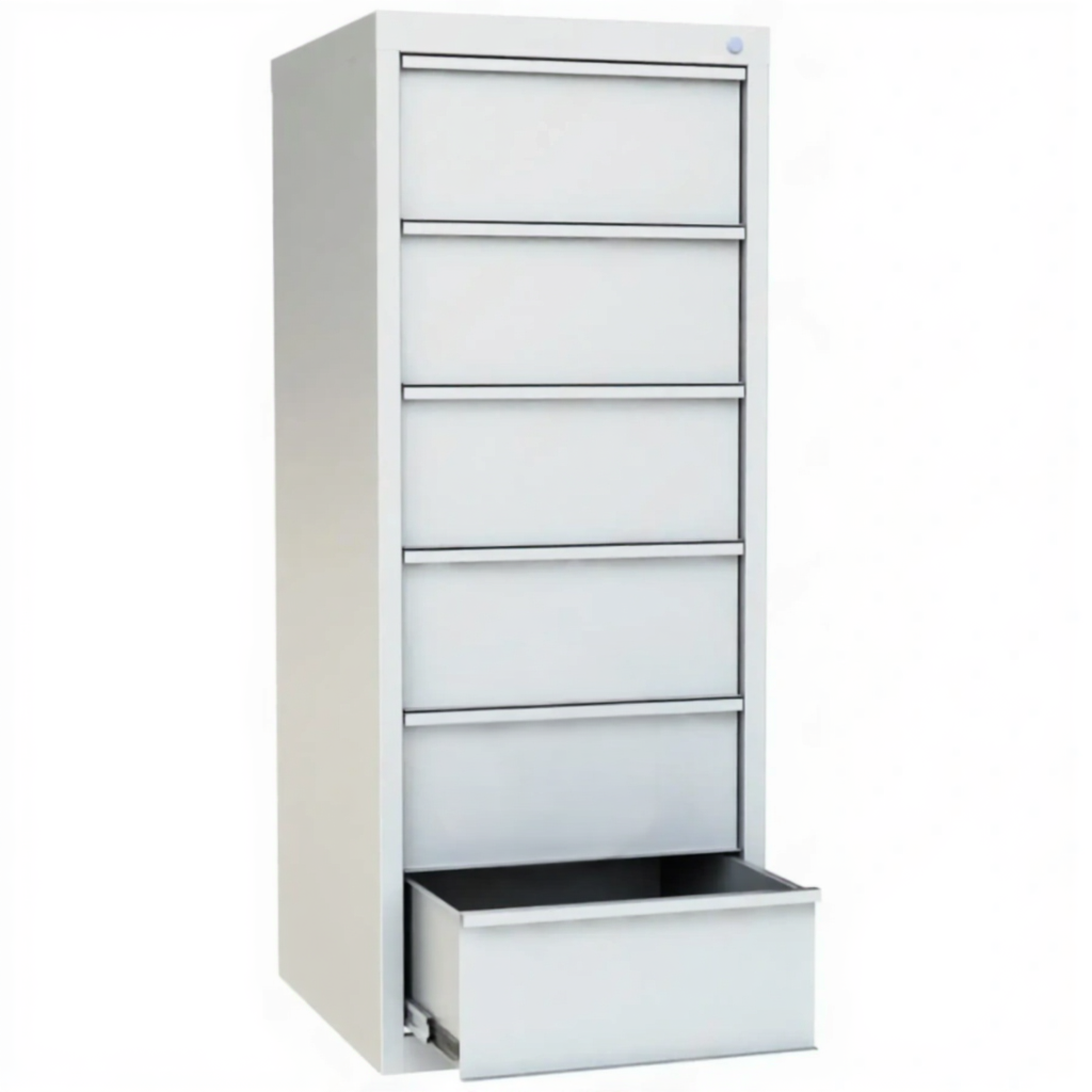 - Защита содержимого от внешних воздействий — прочный металлический корпус и фасады ящиков защищают карточки и документы от пыли, влаги, выцветания и незначительных механических повреждений, обеспечивая их долговременную сохранность.