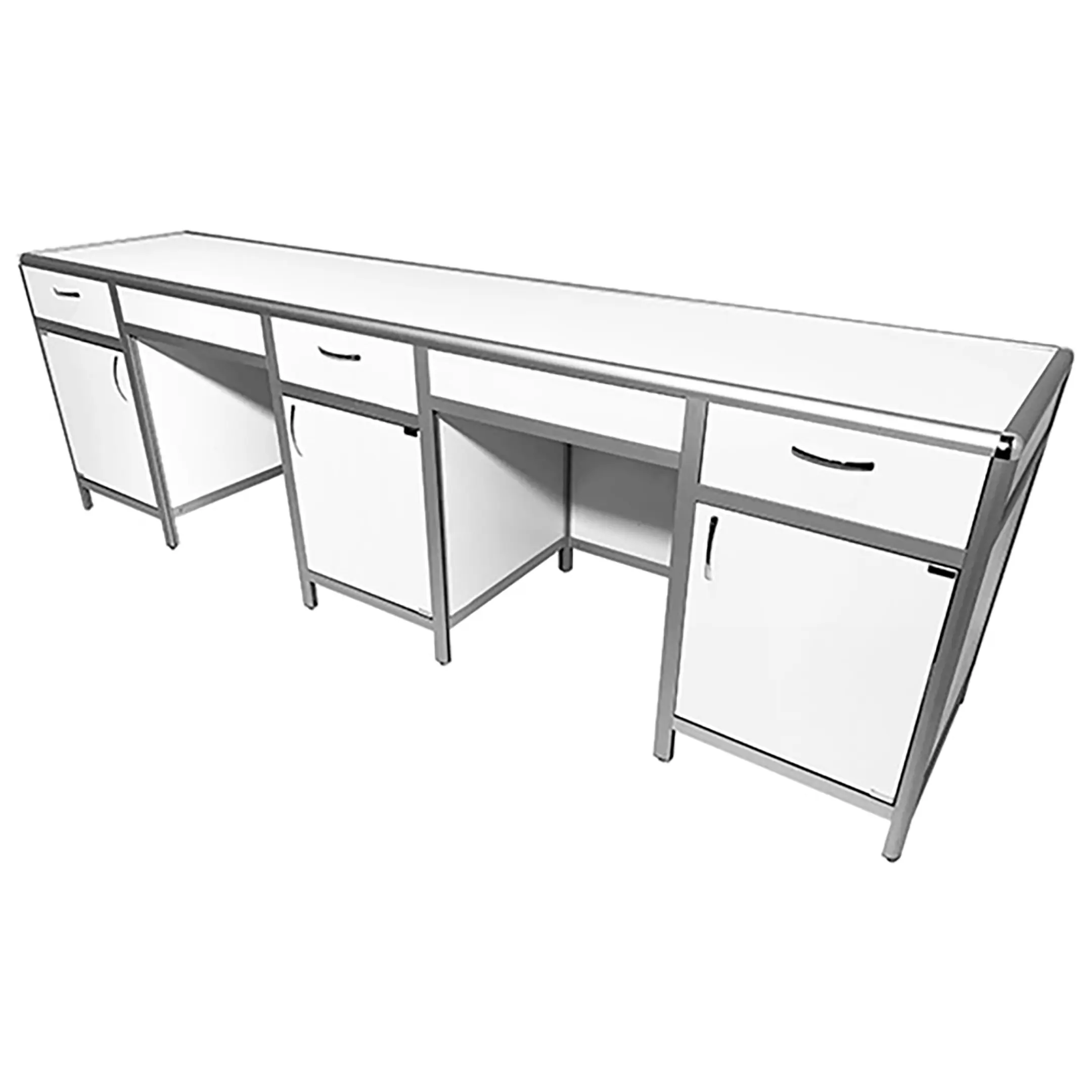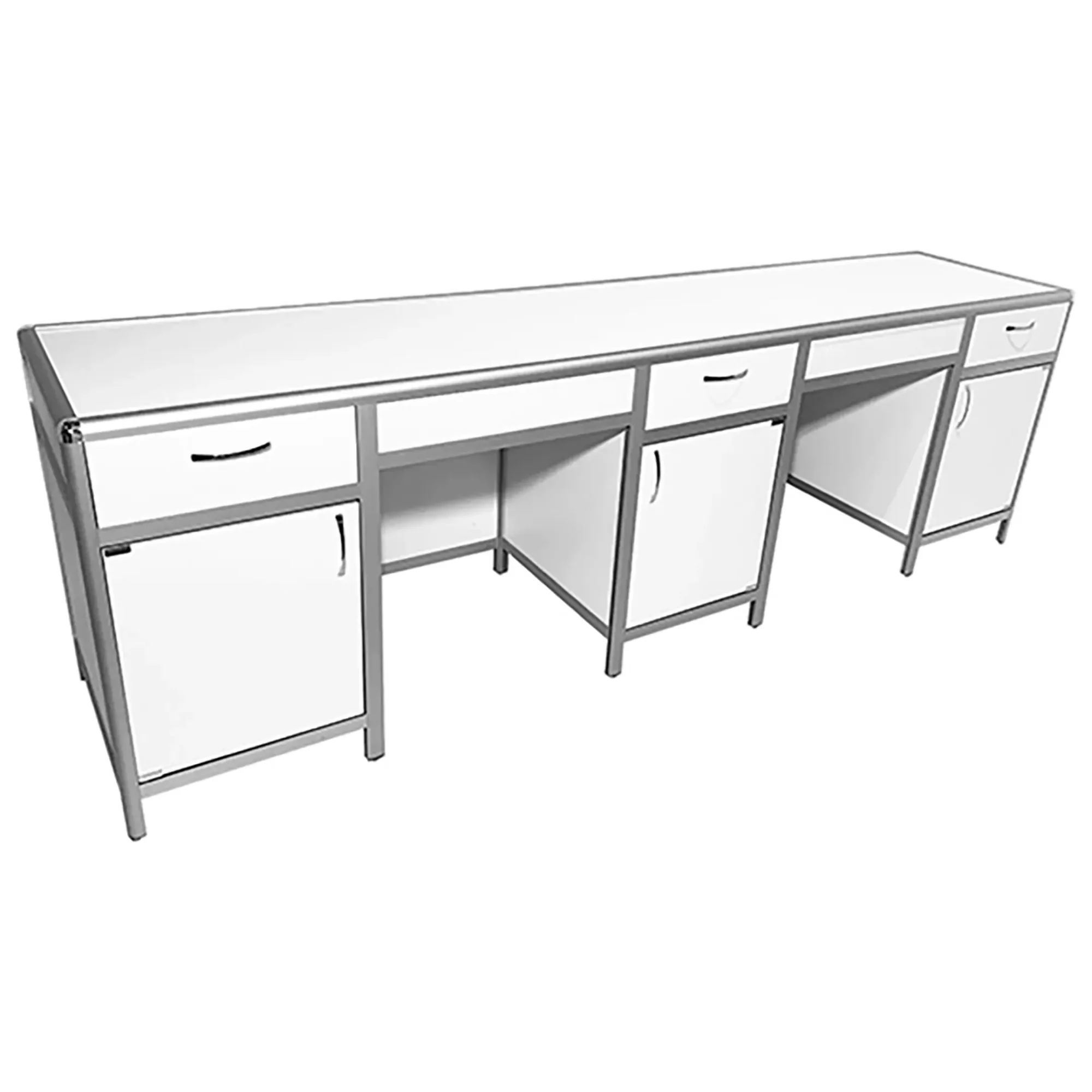 Стол лабораторный MED 10.011al (белый) — это идеальное решение для создания эффективного и организованного рабочего места сотрудников в лабораториях и медицинских учреждениях. Модель оснащена тремя тумбами, каждая с верхним выдвижным ящиком, отделением с распашной дверкой и полкой. Каркас выполнен из алюминиевого профиля, столешница из ЛДСП толщиной 16 мм.