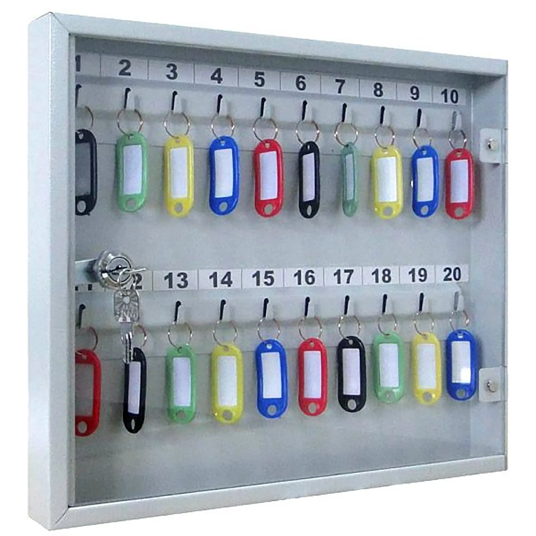 - Наглядность и мгновенный визуальный контроль — прозрачная дверца позволяет с первого взгляда оценить наличие и расположение всех ключей без необходимости открывания. Это обеспечивает оперативную проверку, быстрый поиск нужного ключа и предотвращает ошибки, связанные с его отсутствием на месте.