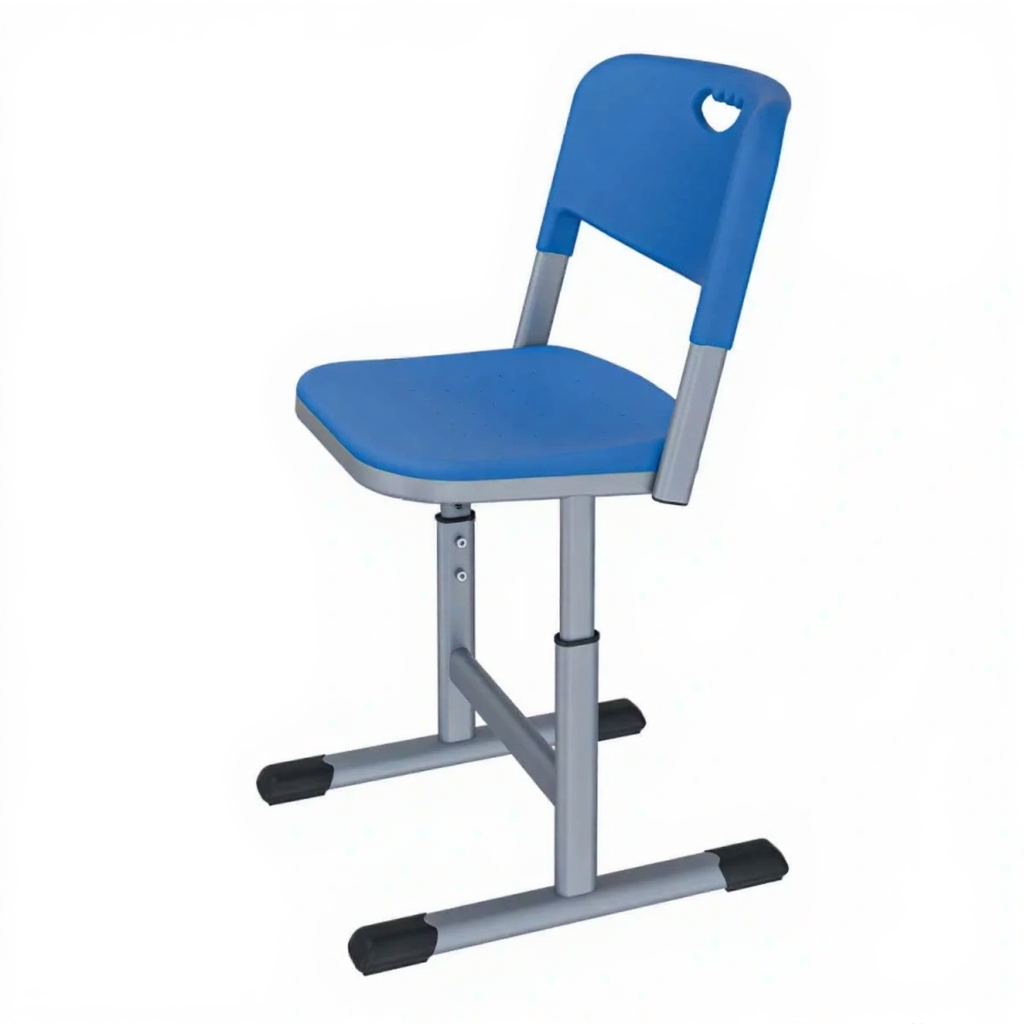 • Регулируемая высота — позволяет адаптировать стул под рост ученика и высоту стола, обеспечивая правильную посадку.