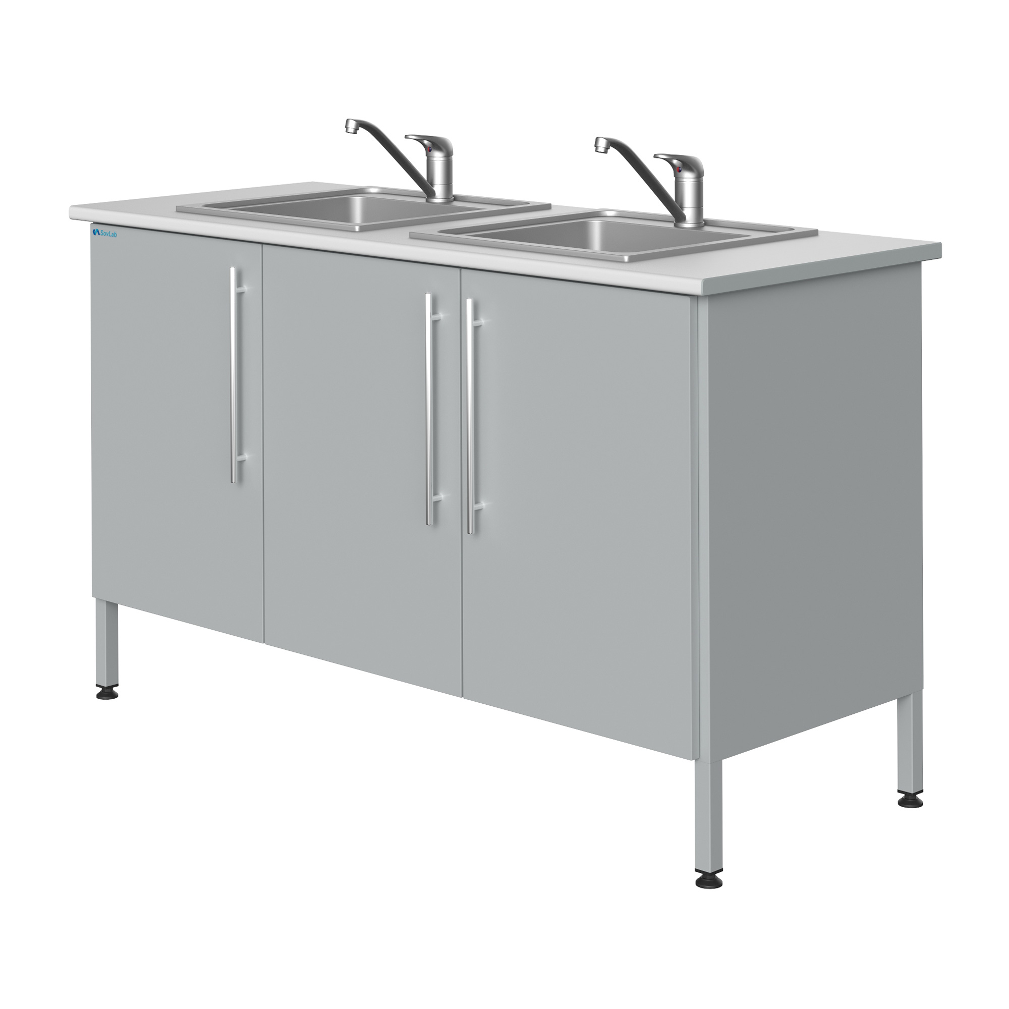 Стол-мойка Mod. 1500 НЖ-2 — это специализированное лабораторное оборудование, предназначенное для качественной и безопасной мойки лабораторной посуды, приборов и инструментов. Модель оснащена двумя врезными мойками из нержавеющей стали, смесителем и всей необходимой арматурой для подключения к инженерным сетям. Каркас установлен на винтовые опоры, позволяющие выставить строго горизонтальное положение.