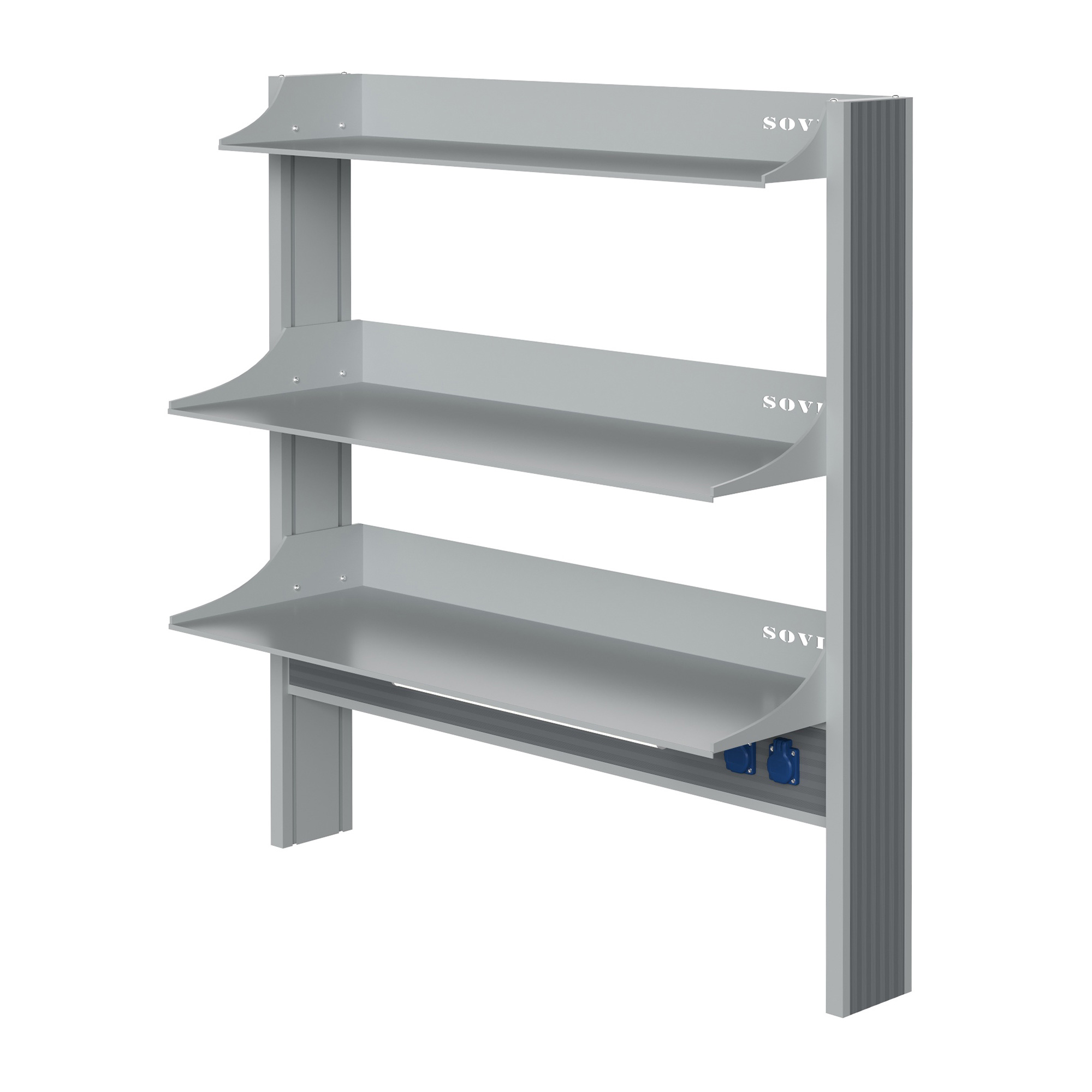 - Усиленная конструкция для приборов — три металлические полки с высокими бортами обеспечивают надежное размещение оборудования.