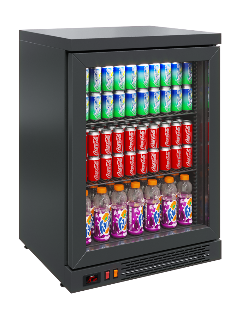 Особенности Оттайка автоматическая с системой испарения конденсата. Кол-во полок в комплекте: 2. Допустимая нагрузка на полку: 10 кг. Размер полки, мм500х360, Шаг установки полок, мм12,5. Толщина стенки корпуса - 43 мм. Подсветкавертикальная LED. Модель черного цвета. Электронный блок управления. Полезная нагрузка 25 кг. Описание Модель подходит для встраивания в барную стойку и пристенный модуль. Может использоваться и как самостоятельный пристенный модуль.Правостороннее открывание дверей со стеклопакетами в алюминиевых рамах может быть заменено по заказу на левостороннее .Возможна поставка без столешницы – как обыкновенный холодильный шкаф. Высота без столешницы – 810 мм.