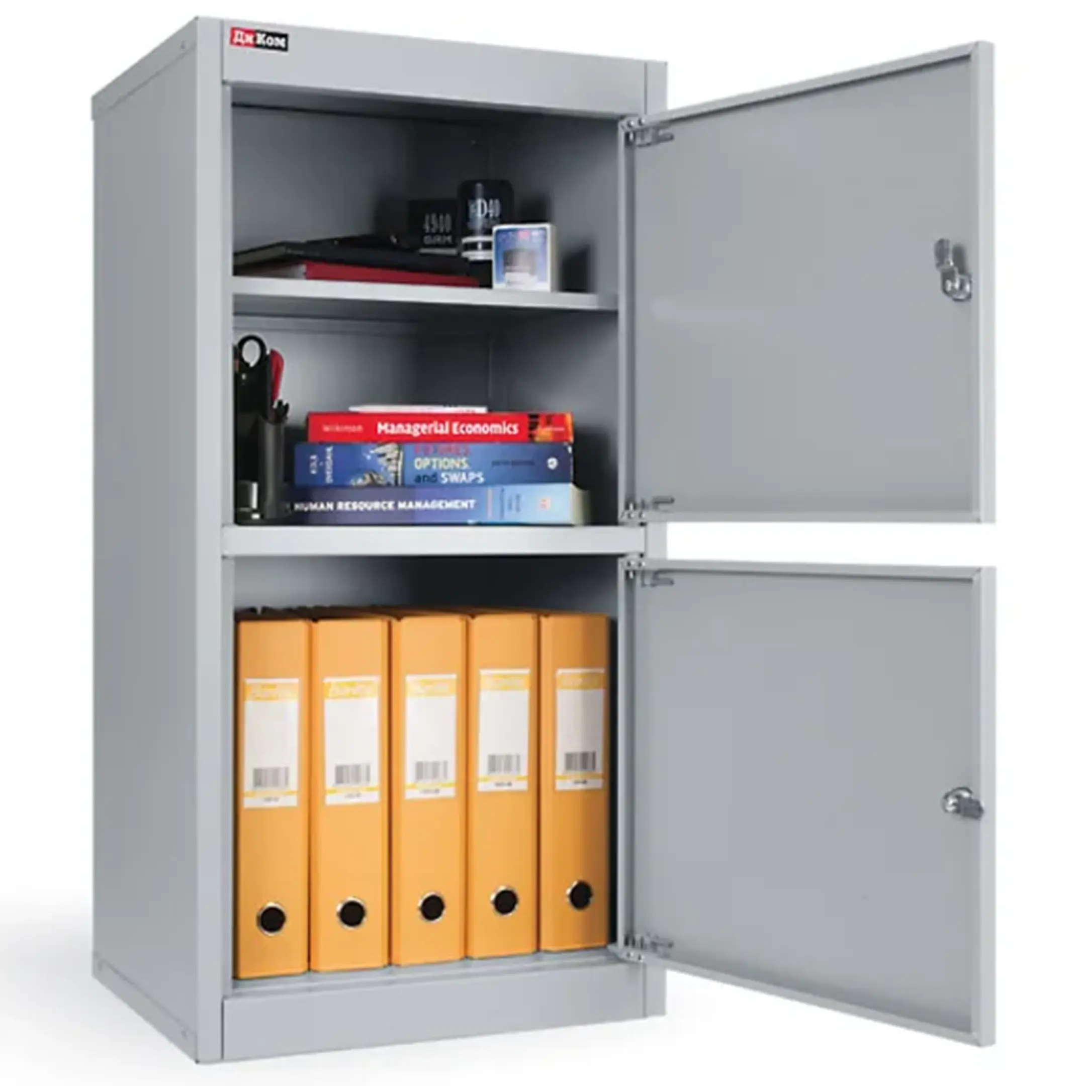 - Универсальность и гибкая организация — полностью свободное внутреннее пространство без стационарных полок позволяет хранить предметы различных размеров и форм: от крупного оборудования и техники до спортивного инвентаря, коробов, спецодежды и хозяйственных принадлежностей, что делает шкаф идеальным решением для разнородных задач хранения.
