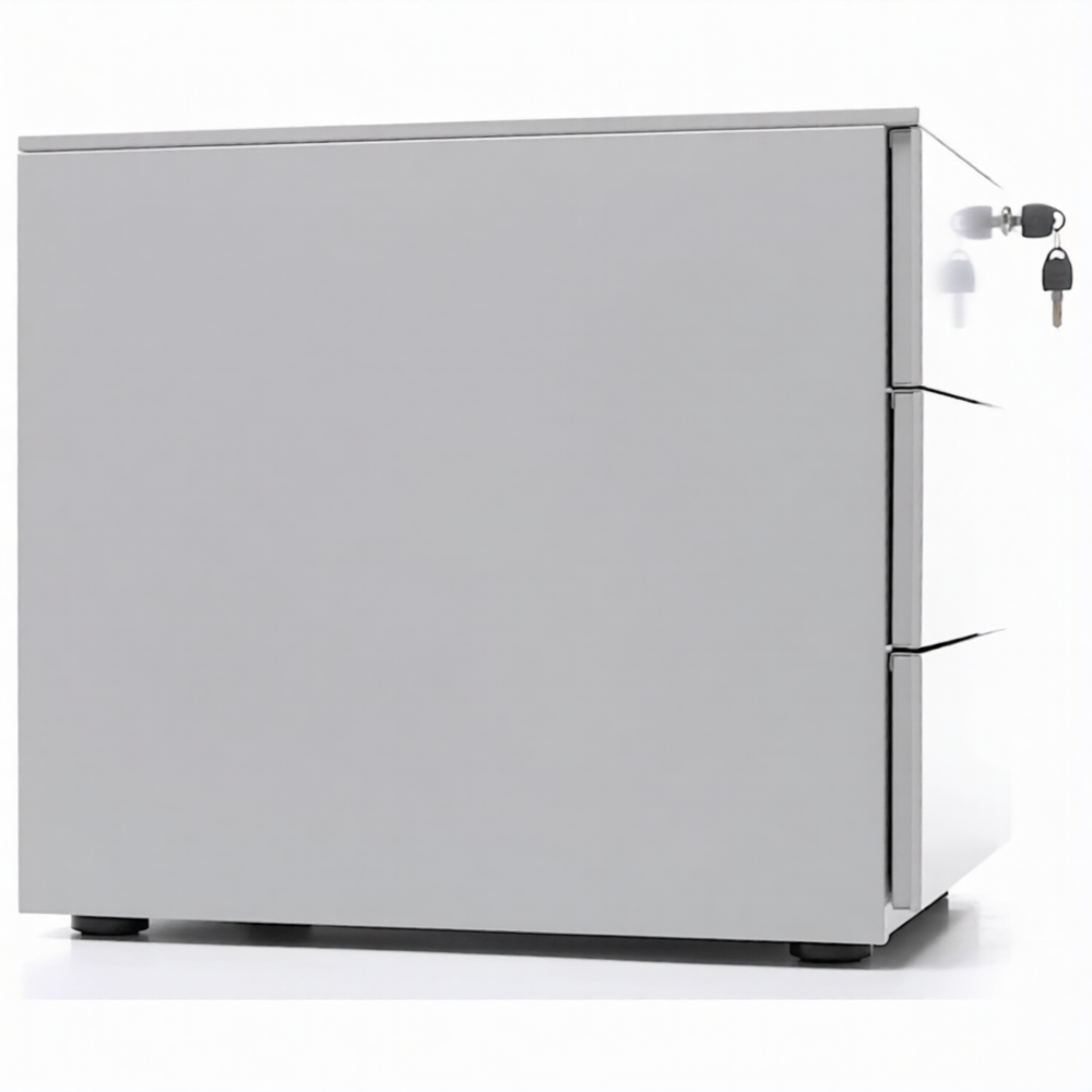 Опции: пластиковые лотки и металлический ящик для канцелярских принадлежностей и других предметов. Возможность комбинирования цветов: корпус + фасады ящиков и крышка (конструкция тумбы металл+металл). Или отделка фасадов ящиков и крыши тумбы ламинированной плитой ЛДСП (конструкция тумбы металл+ЛДСП)