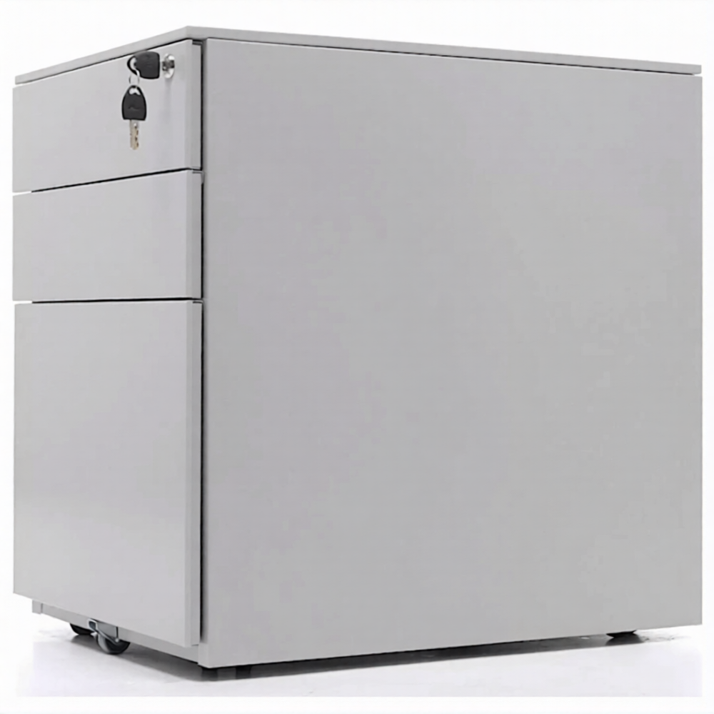 Опции: пластиковые лотки и металлический ящик для канцелярских принадлежностей и других предметов. Возможность комбинирования цветов: корпус + фасады ящиков и крышка (конструкция тумбы металл+металл). Или отделка фасадов ящиков и крыши тумбы ламинированной плитой ЛДСП (конструкция тумбы металл+ЛДСП)