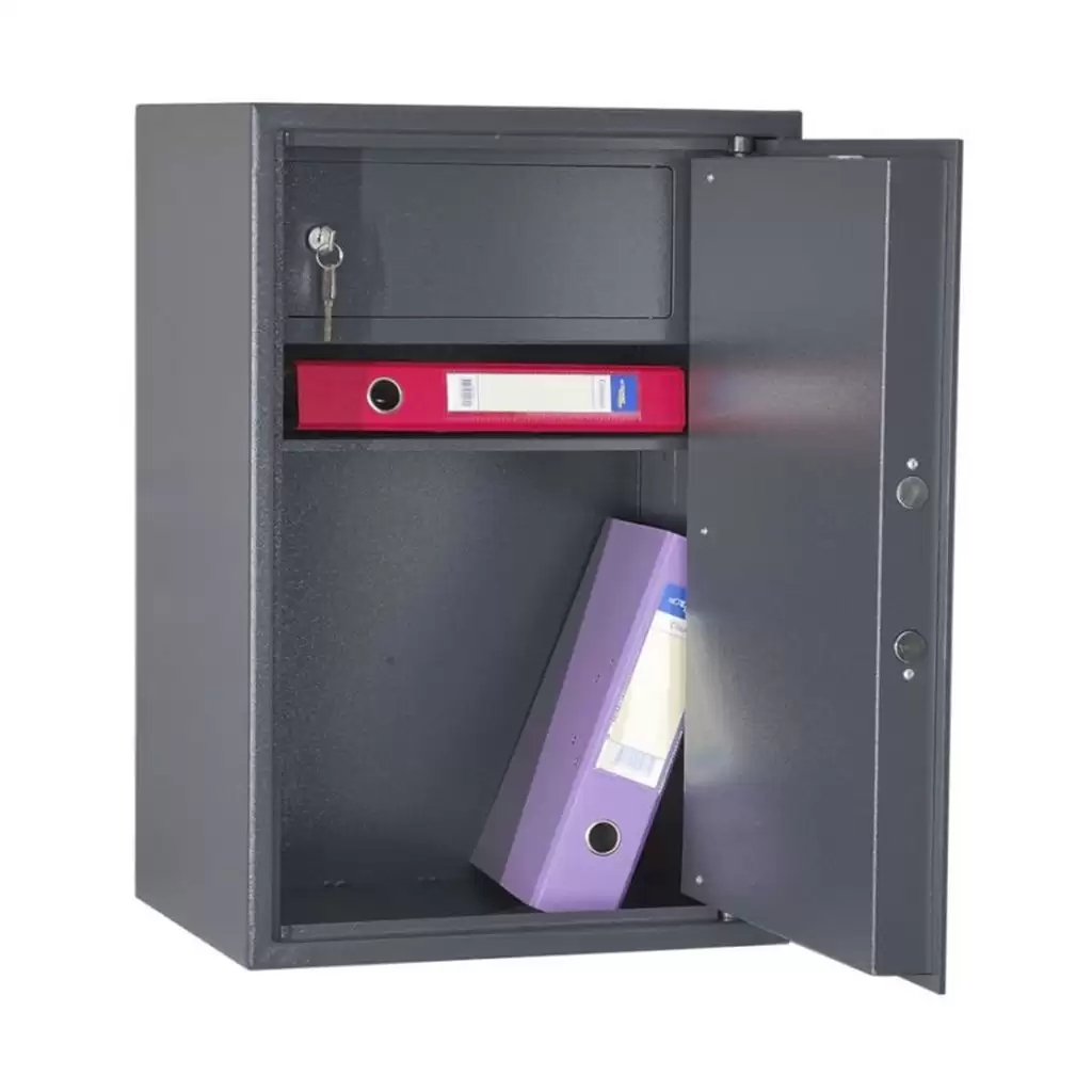 • Сейф односекционный, оснащен двумя съемными полками и трейзером.