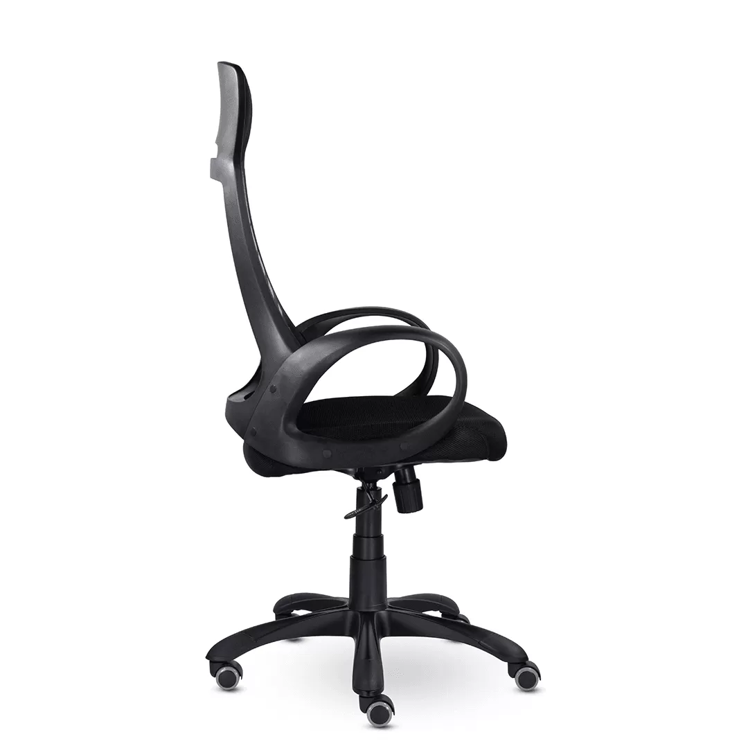 - Современный дизайн — чёрный пластиковый каркас и сдержанный внешний вид делают кресло универсальным решением для офисов различного стиля.