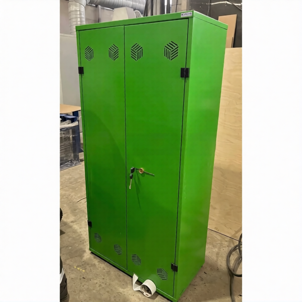 • Шкаф усиленный для СИЗ комплектуется опечатывающим устройством и регулируемыми опорами для компенсации неровностей пола.