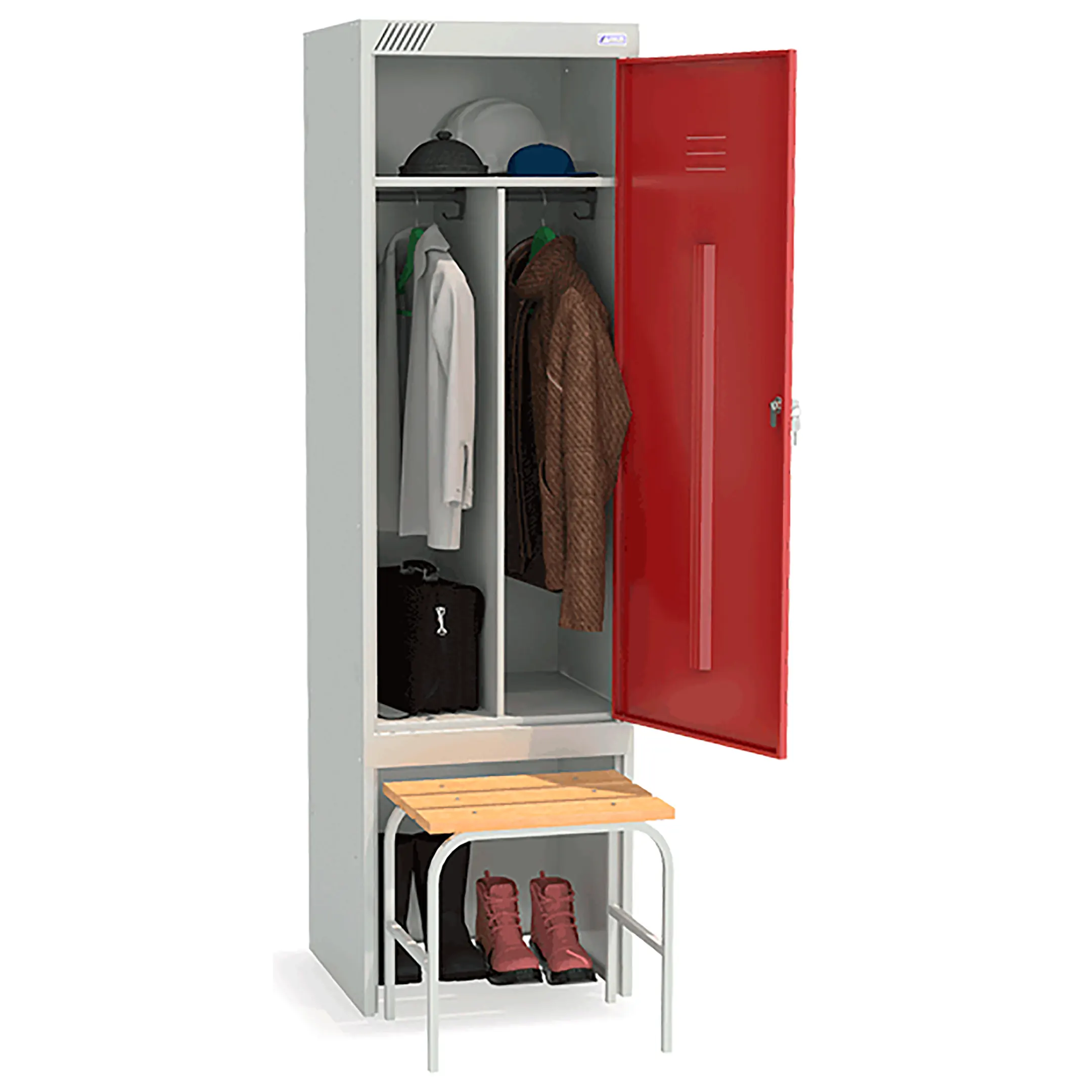 Металлический шкаф для одежды ШРЭК-21-530 ВСК предназначен для хранения сменной одежды в офисных, производственных и спортивных помещениях.