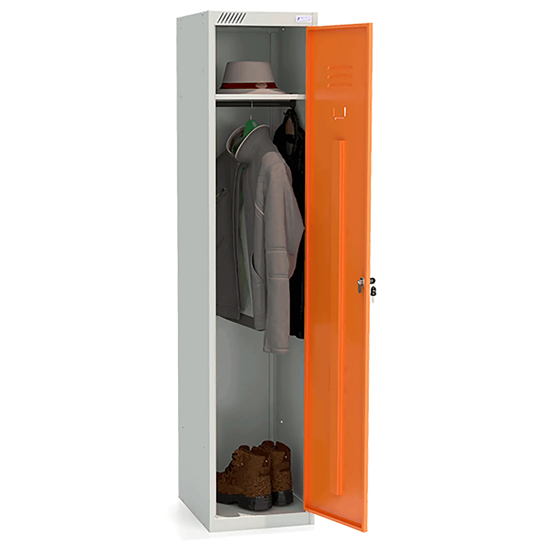 Металлический модульный шкаф для одежды ШРС-11-400 используется для хранения сменной одежды в офисных, производственных, спортивных помещениях.