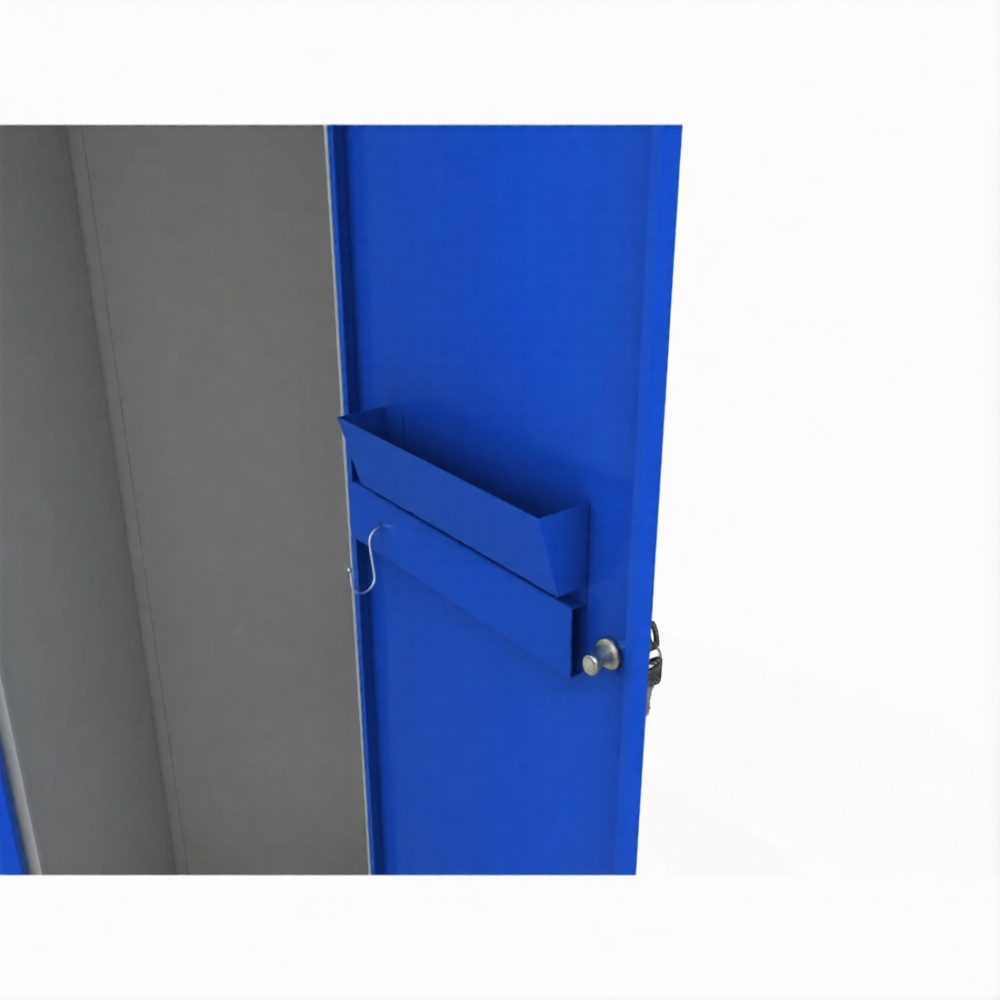 • Двери оснащены: крючками для полотенец - 2 шт., зеркальцем В150хШ150 мм, лотком В70хШ180хГ50 мм со скошенной передней стенкой для хранения мелочей (ключей, моб. телефона, очков и тп.), держателями бирок В42хШ92 мм